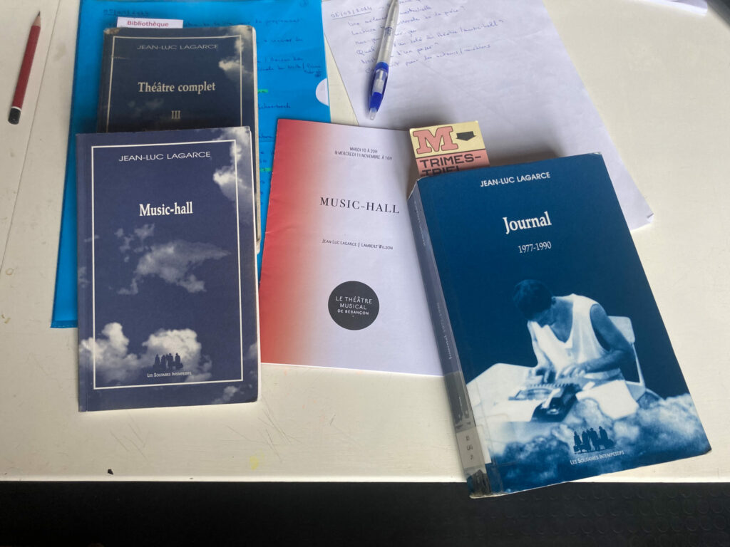 « Music-hall » est une pièce de Jean-Luc Lagarce écrite en 1988 où trois comédiens.nes se remémorent leur « numéro » autour d’une chanson de Joséphine Baker, tout en relatant leurs parcours et leurs désillusions. Ils ne renoncent pas à leur rêve de théâtre, bien qu’ils ne croient plus en des lendemains qui chantent.